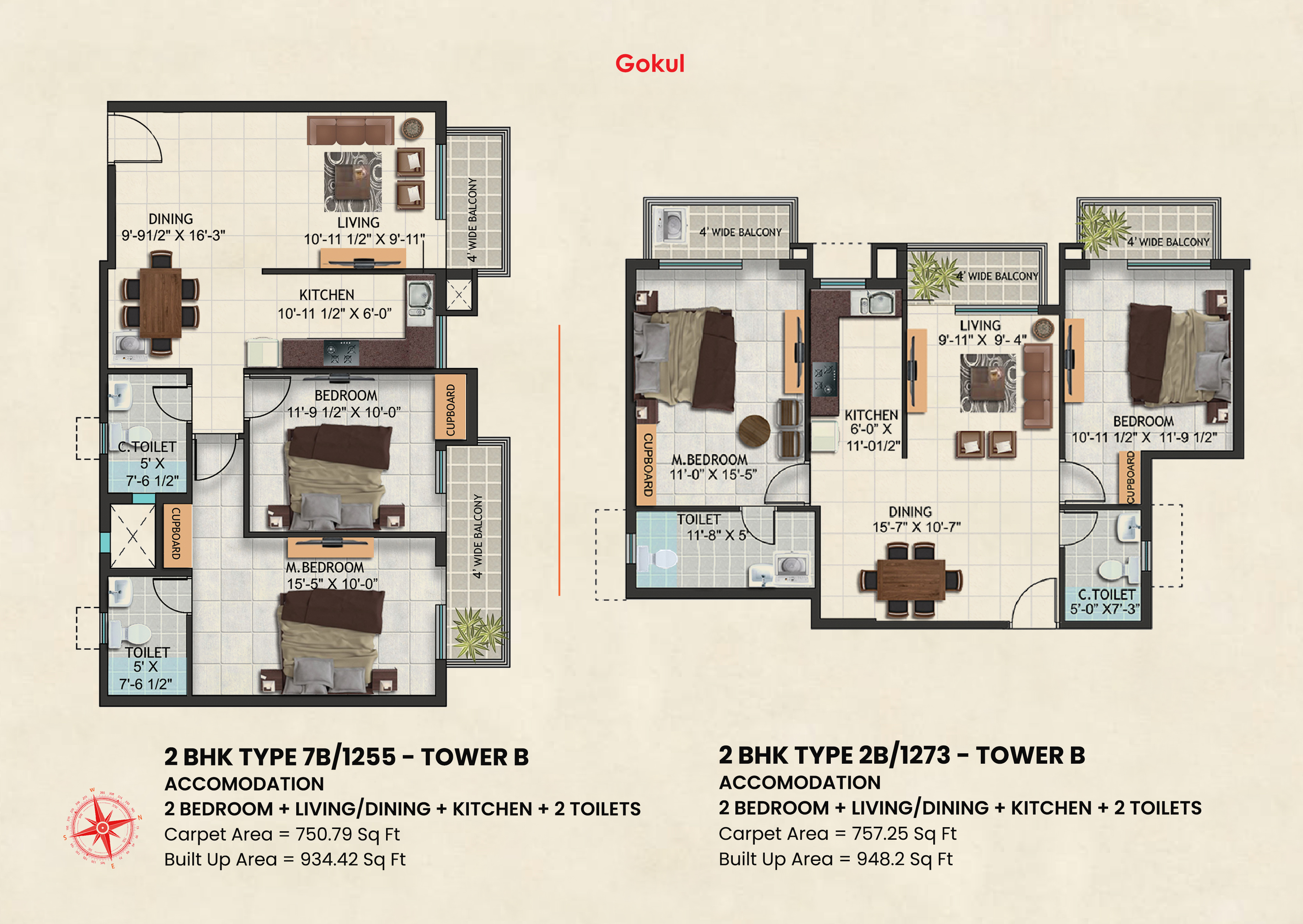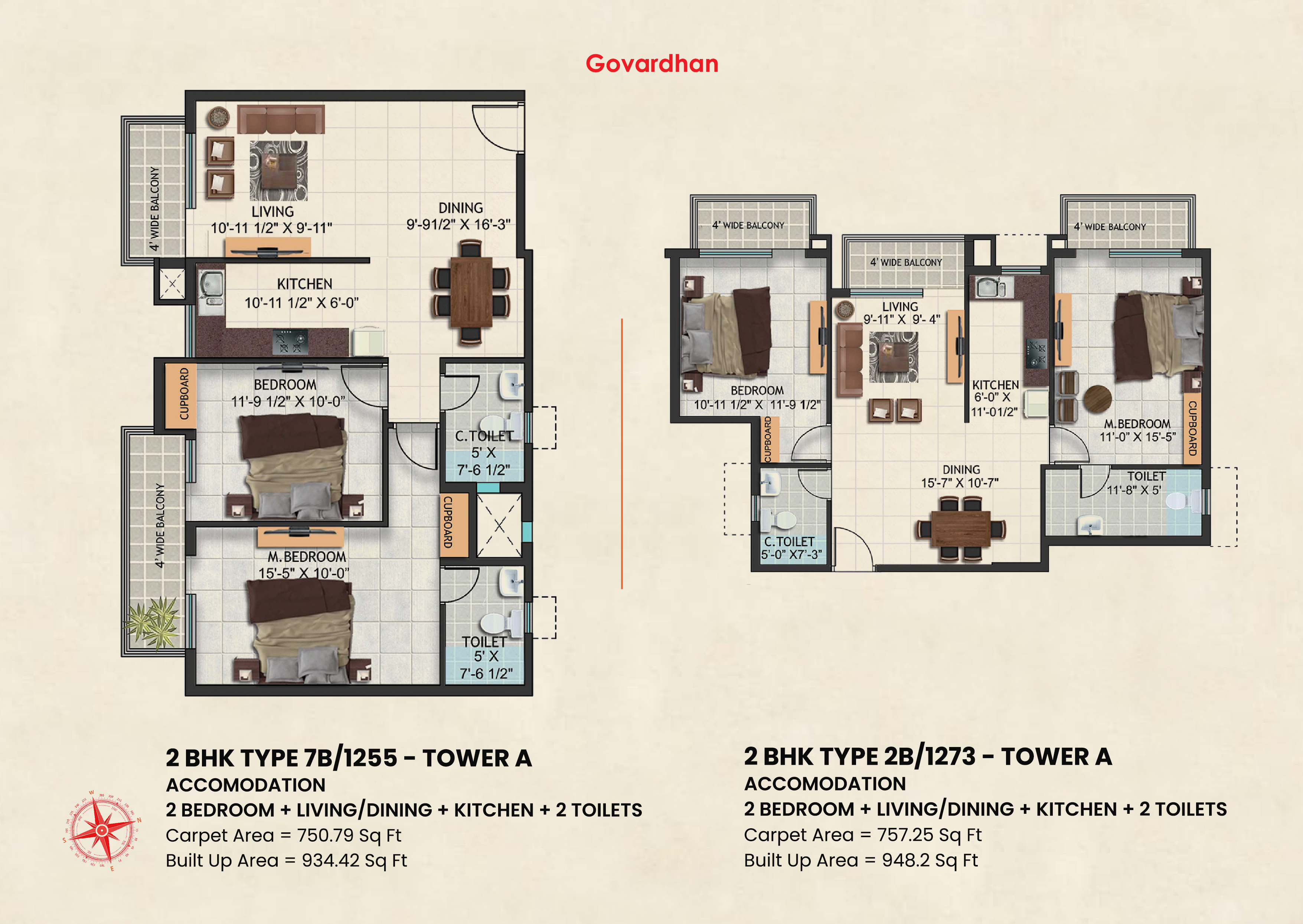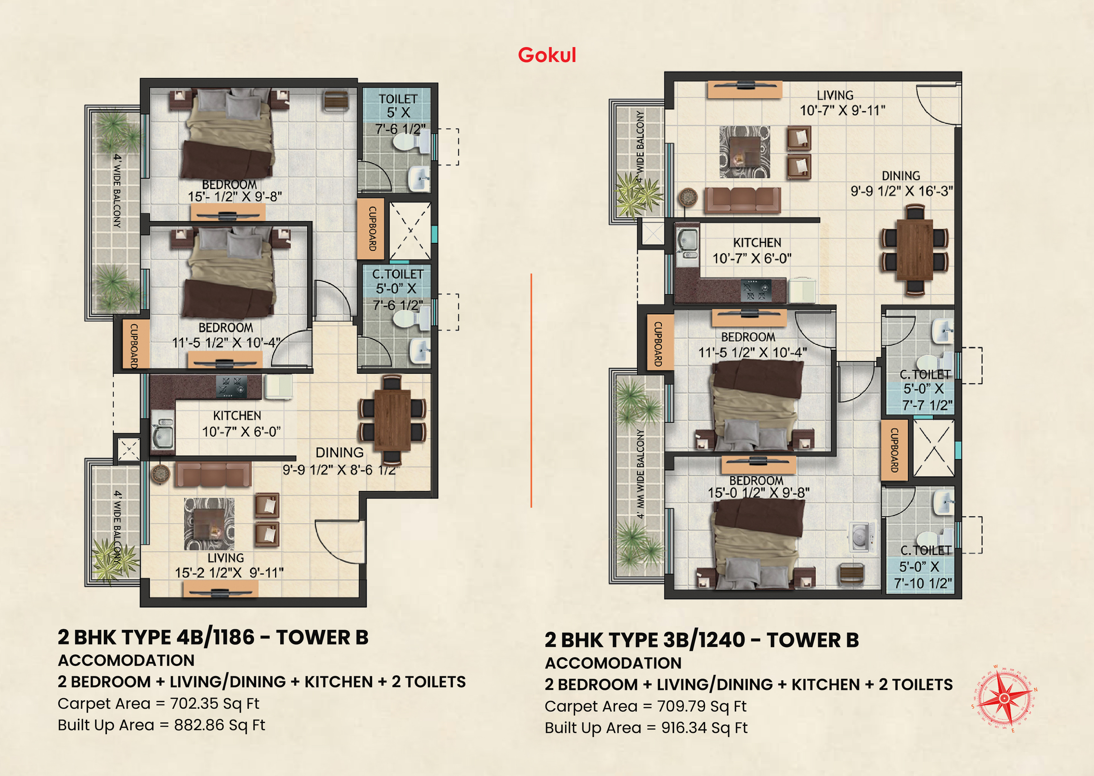 | 2 BHK | 1186 Sq.Ft. - 1273 Sq.Ft. | Click For Price |