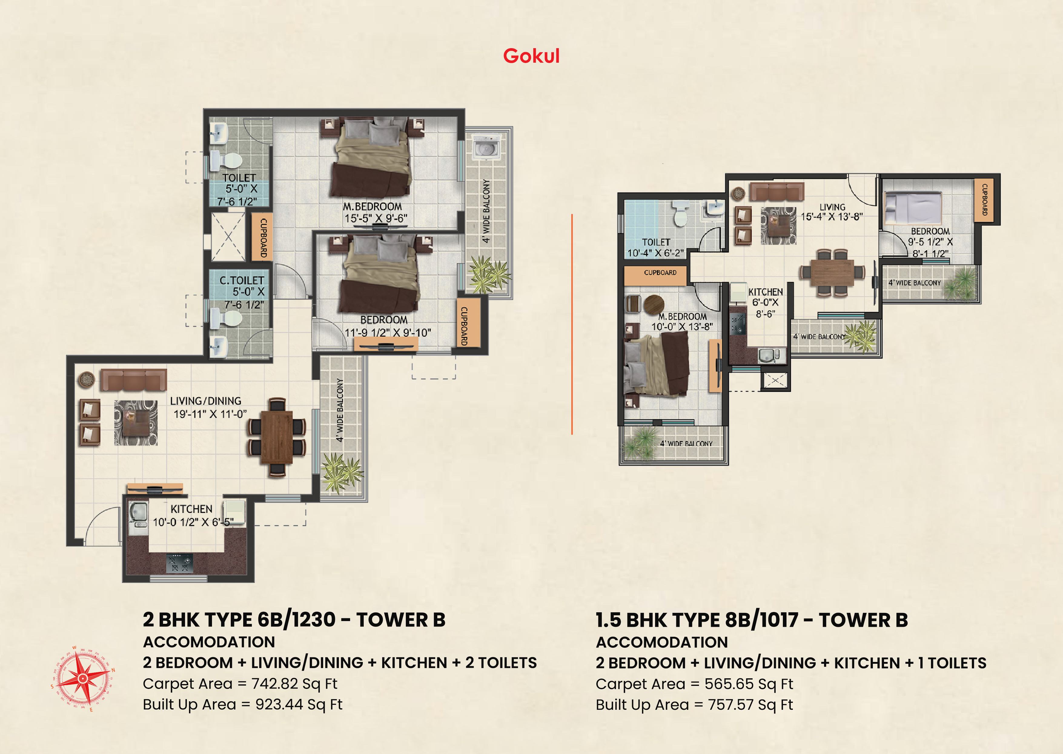 | 1.5 BHK | 1017 Sq.Ft. | Click For Price |