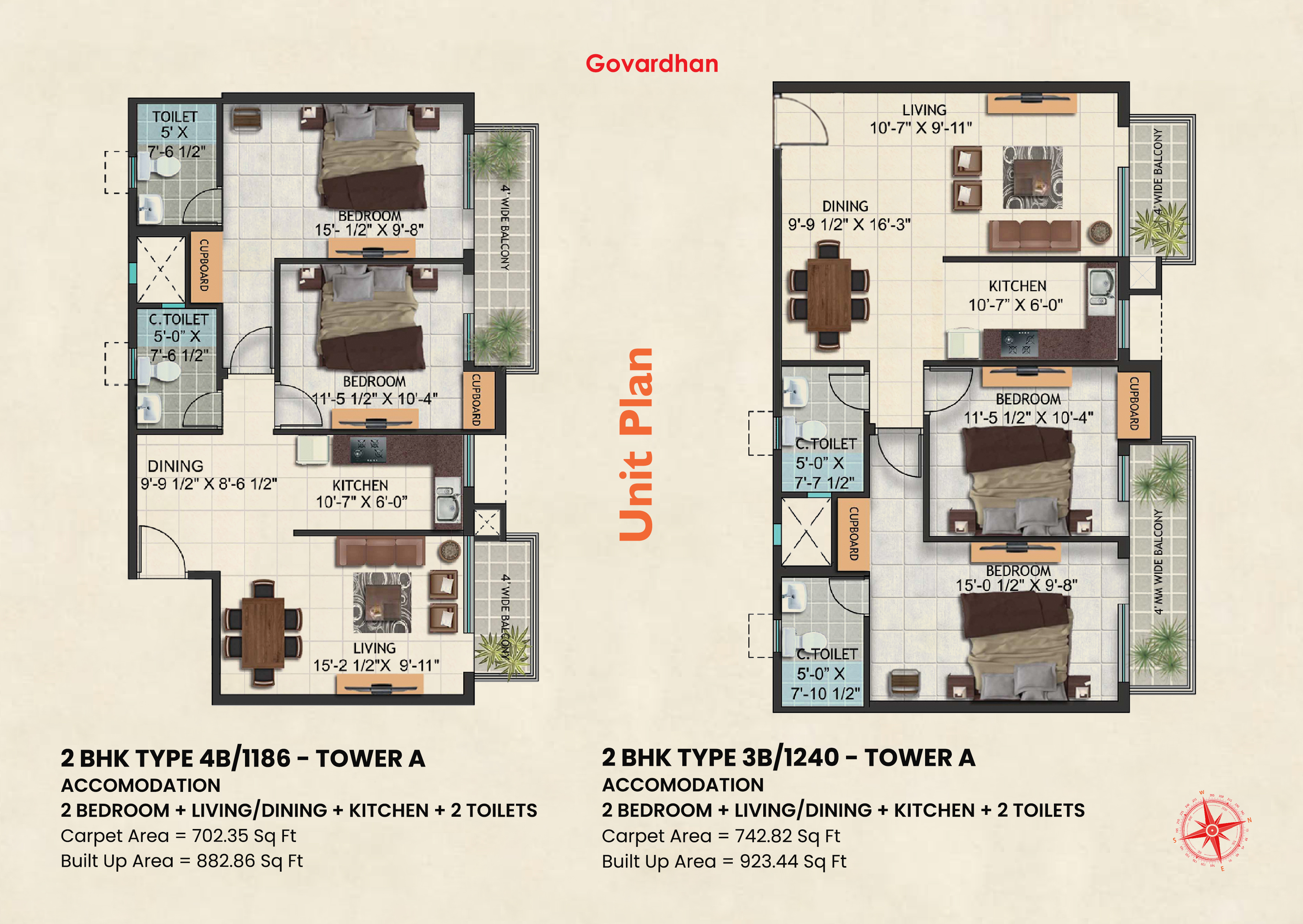 | 2 BHK | 1186 Sq.Ft. - 1273 Sq.Ft. | Click For Price |